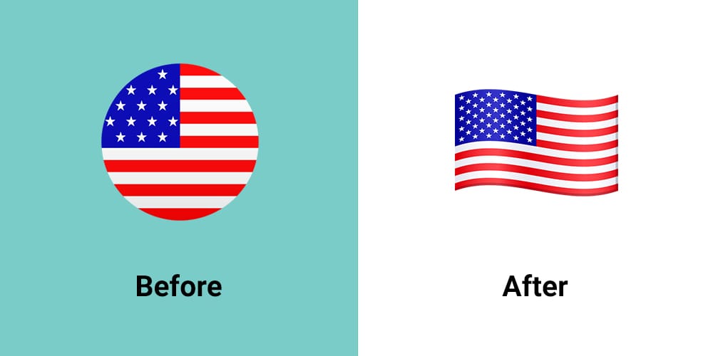 This curved rectangular flag format has also been applied to all of the national flag emojis in JoyPixels 9.0, as illustrated by the ๐บ๐ธ United States flag shown below.