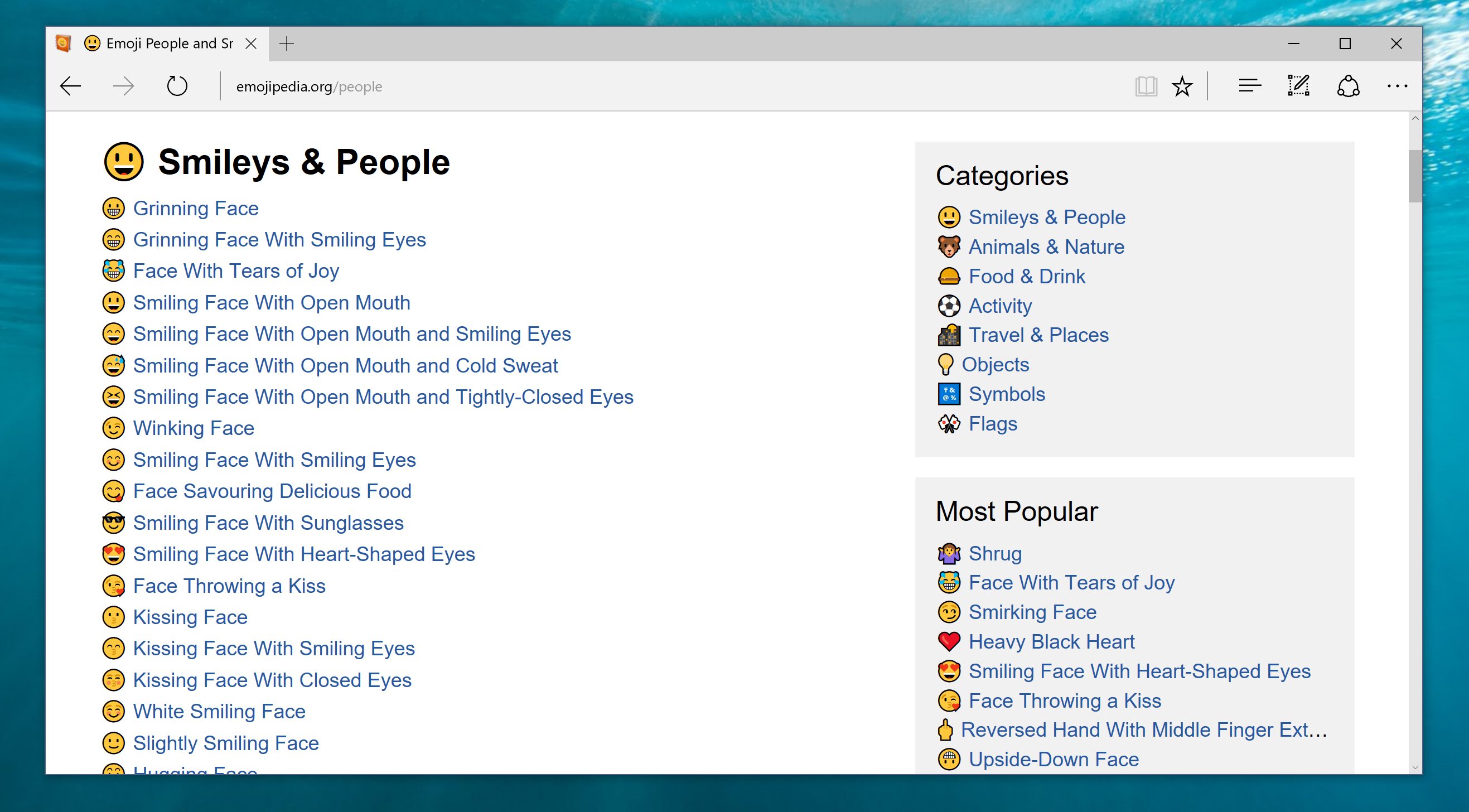 Above: Windows 10 Anniversary Update displaying Smileys & People.