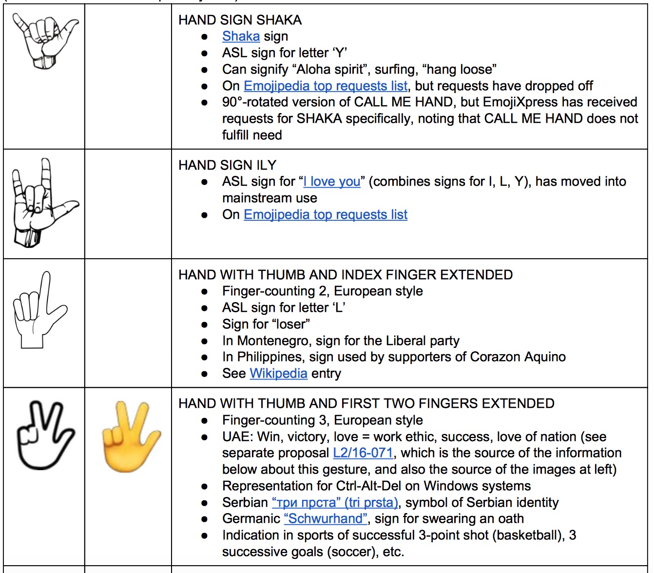 Still catching up on emoji news from earlier in the month, here is a proposal from Peter Edberg (Apple) and the Emoji Subcommittee for 10 separate hand gesture emojis.