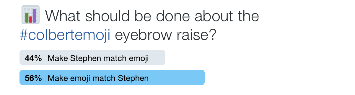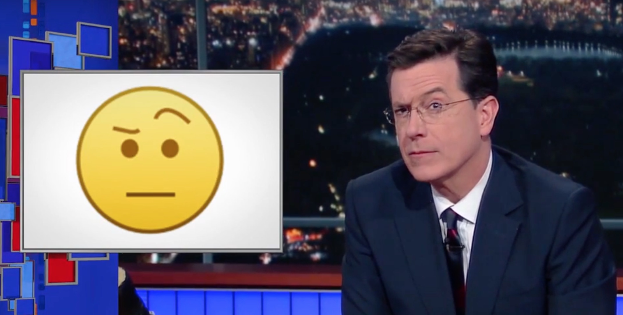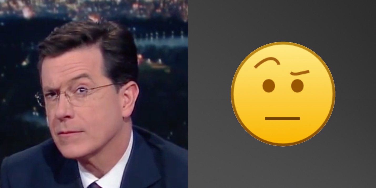 The Late Show went as far as mirroring the emoji image for broadcast, so the two raised brows would match: