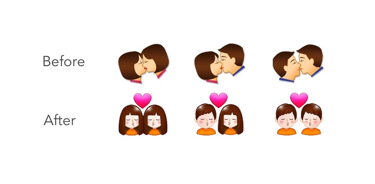 Also changed in this release is a design update for the kissing couple emojis. These now look more consistent with other Samsung emoji people, as well as other platforms.