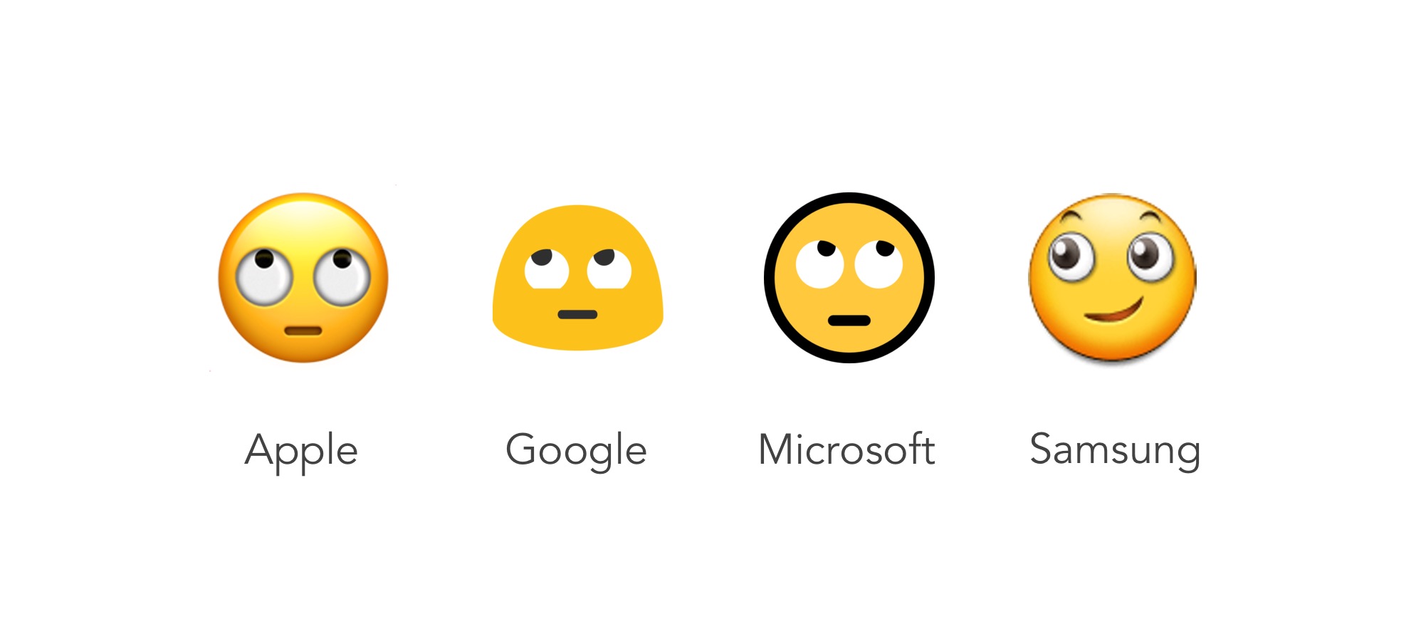 Above: Face With Rolling Eyes as it appears on various platforms.