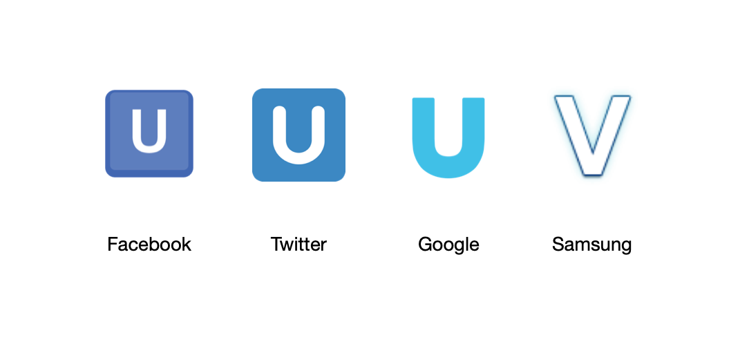 For the longest time, ๐บ Regional Indicator Symbol Letter U appeared on Samsung phones as the letter V. Likewise, ๐ป Regional Indicator Symbol Letter V appeared as the letter U on Samsung phones.