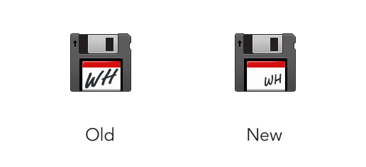 πΎ Floppy Disk has smaller "WH" initials on the label.