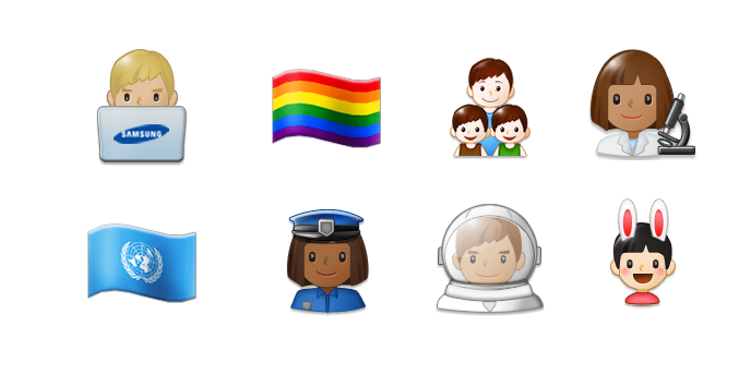 This update brings Samsung in line with the Emoji 4.0 of late 2016, which focussed on new professional roles and gendered emojis.