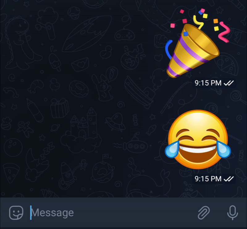 This is also the case when multiple emojis are sent side-by-side without any other text, regardless of whether or not one or more of the emojis is supported within the Telemoji set.
