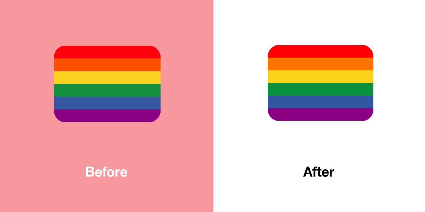 The ๐ณ๏ธโ๐ Rainbow Flag's orange and yellows stripes are now more distinct from one another.