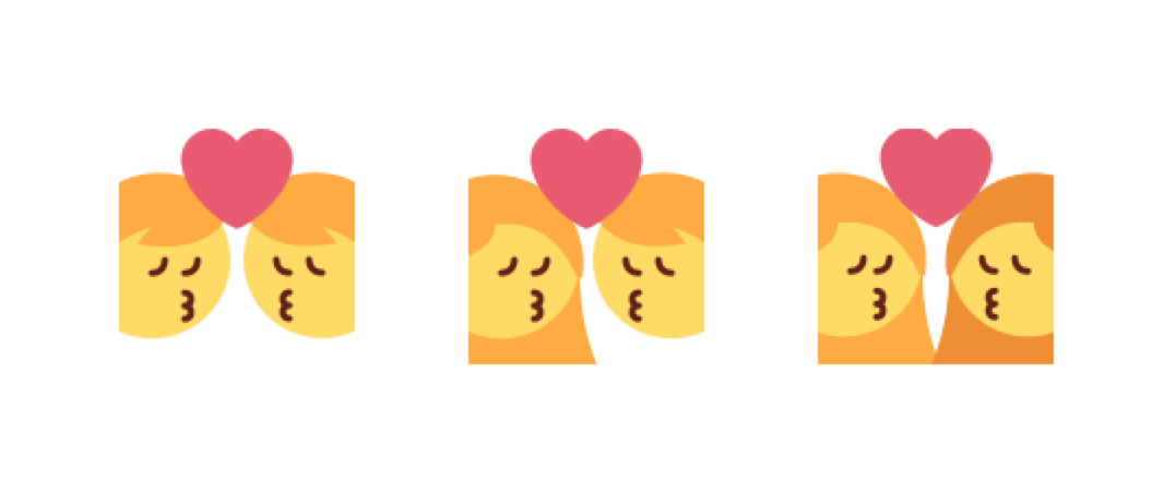 Above: Three varieties of the kiss emoji on Twitter.