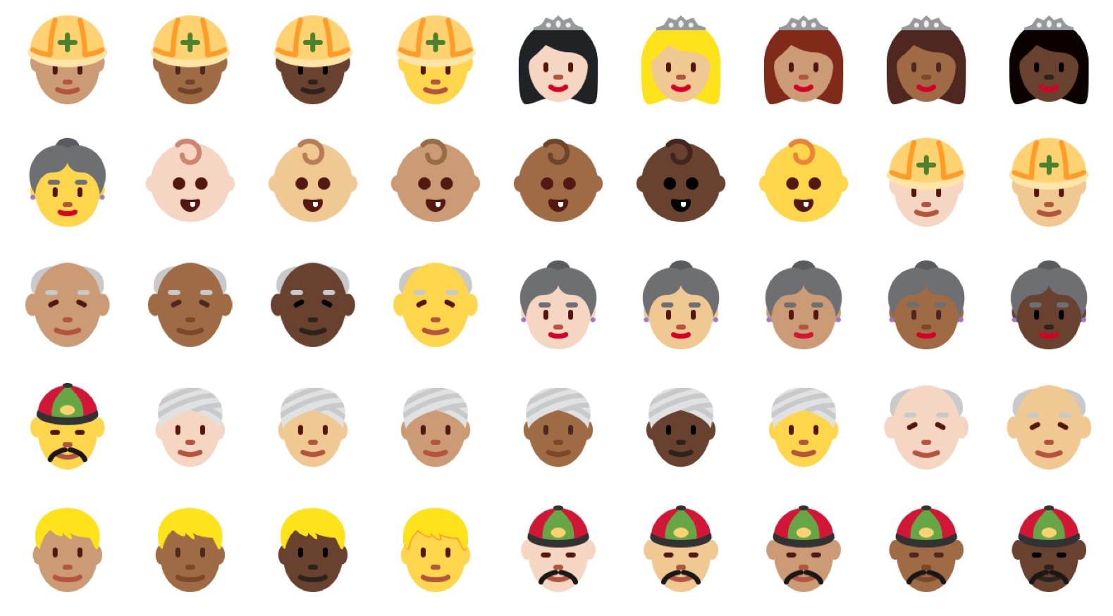 By way of comparison, iOS sticks to yellow hair for the yellow faces, and Microsoft tends to use black hair brown hair (or no hair) for the default-emoji appearance.