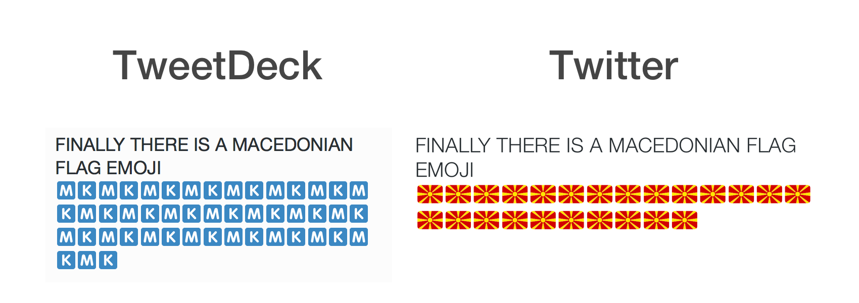 Until now, Twitter has shown two-letter regional indicator codes instead of flags for all-but ten countries. This is a huge improvement[2].