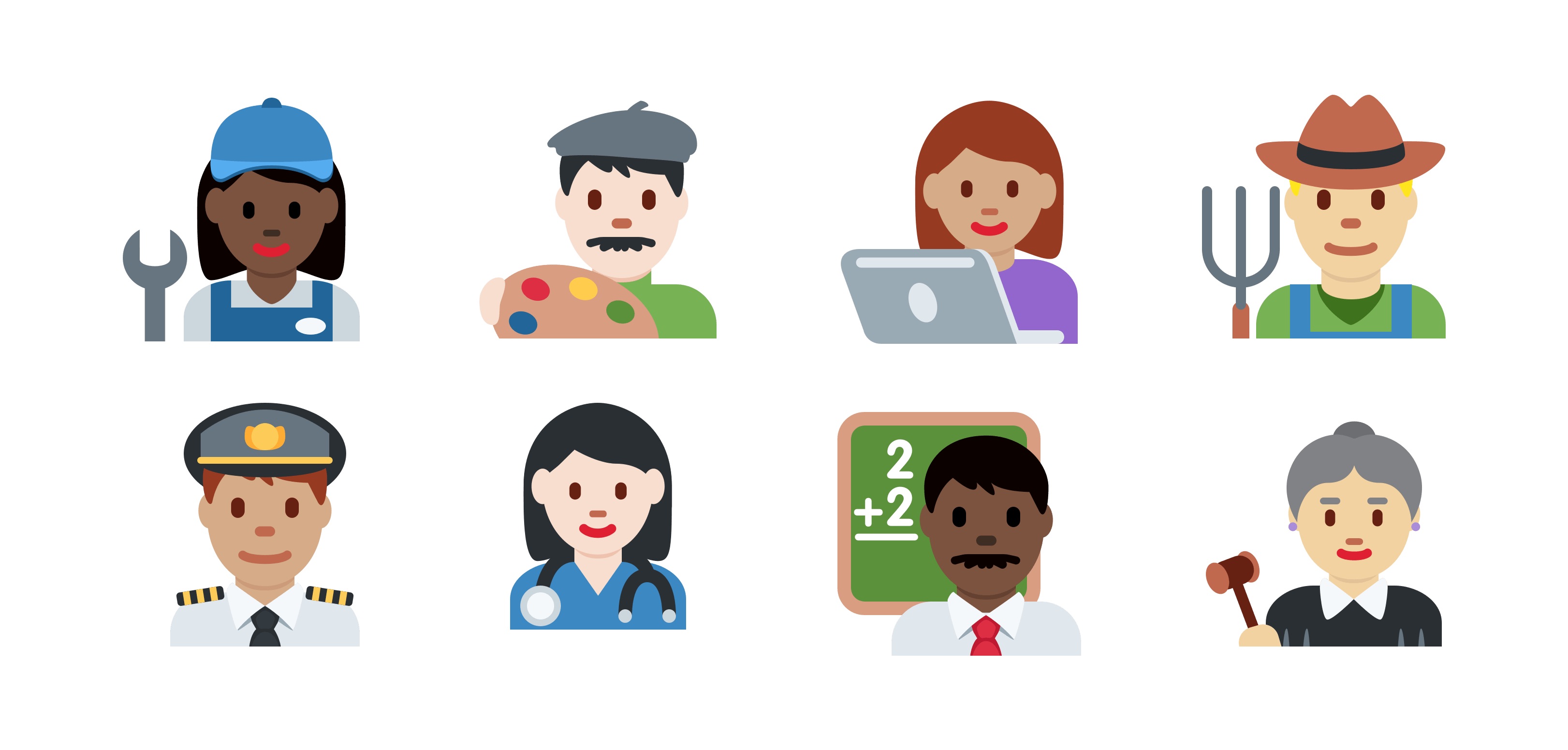 Emoji 4.0 includes a number of updates, with the most prominent one being new professions - each which have a male and female variant.