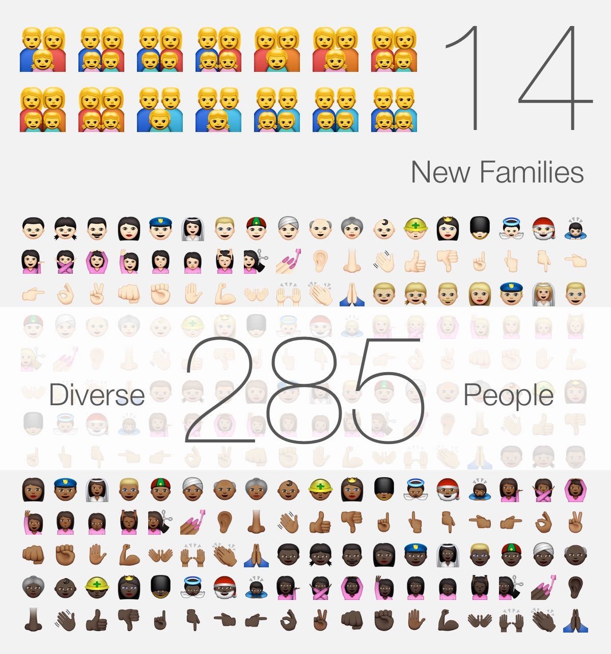 Above: 299 new emoji images have been introduced with only five new codepoints.