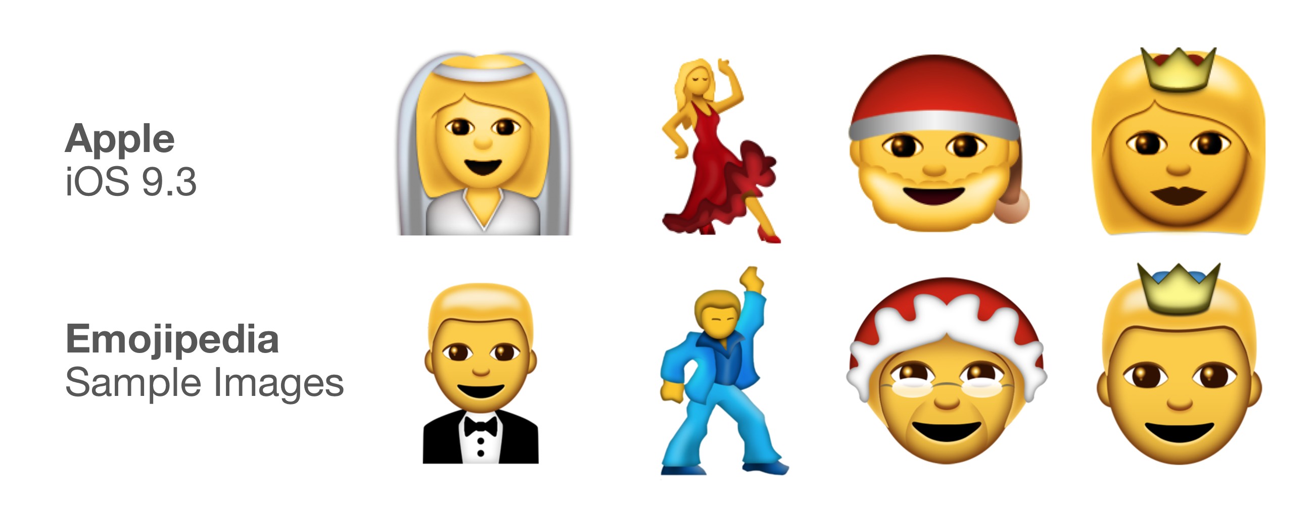Images: Apple iOS 9.3 + Emojipedia Sample Image Collection.