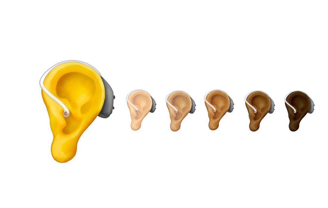 Notice how the ear with hearing aid is only shown once in the chart, despite it supporting five skin tone variations?