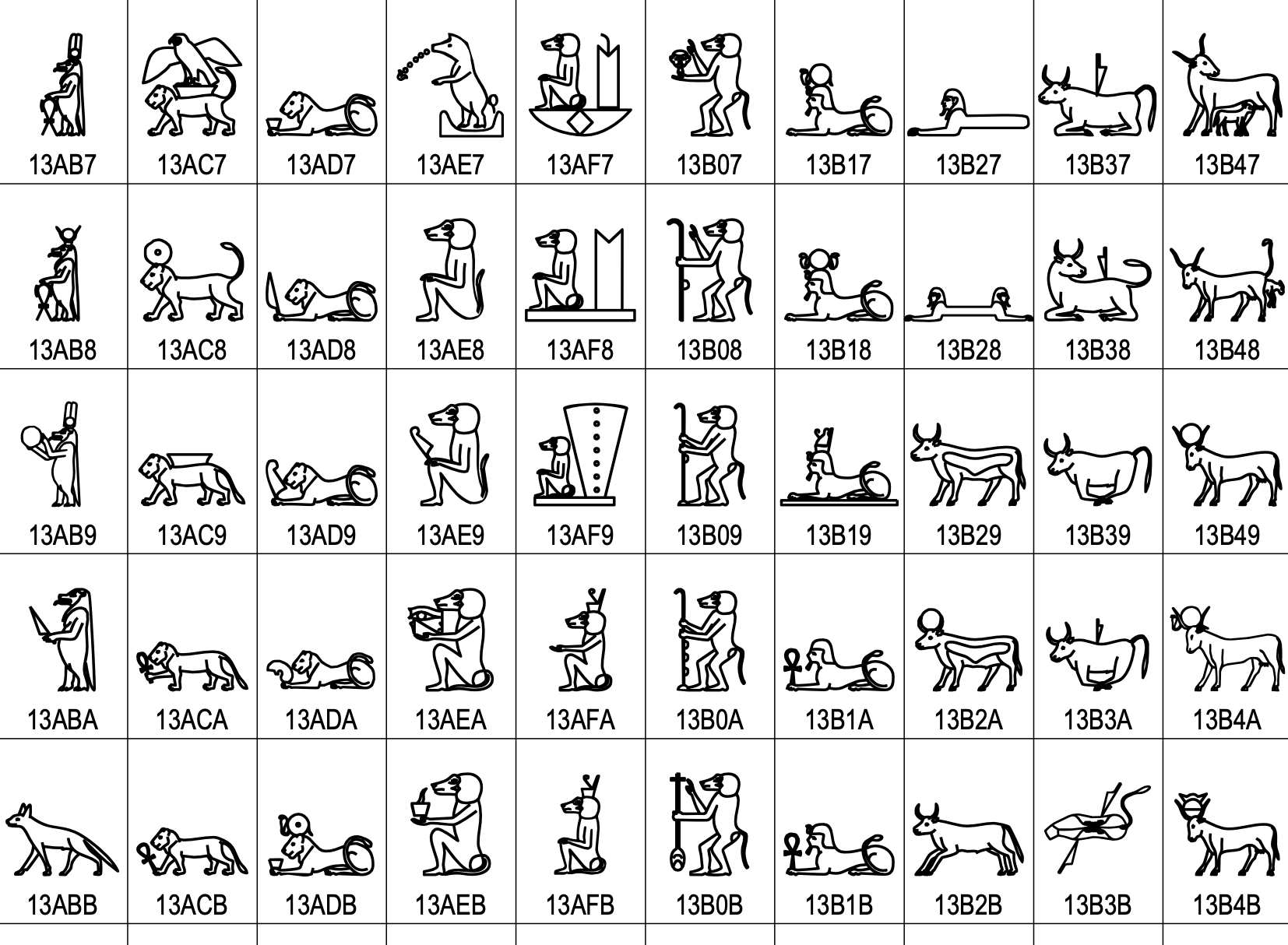 There are also 3,995 additional Egyptian Hieroglyphs, some of which are shown below.