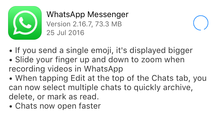 Above: No mention of this emoji in the release notes for WhatsApp 2.16.7.