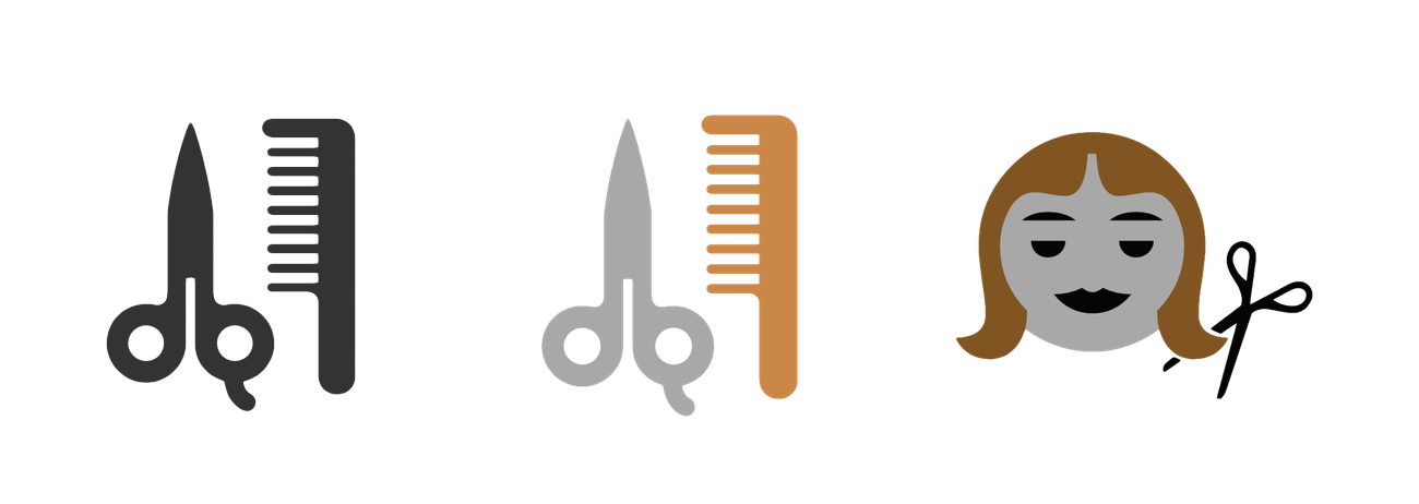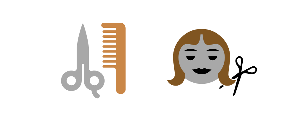 Left-Right: Haircut Emoji in Windows 8, Windows 8.1, and Windows 10