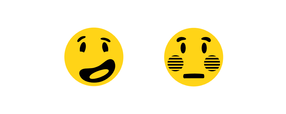 π³ Flushed Face has shaded cheeks, implied to be blushing. Has black-and-white striped circles instead of rosey-red cheeks: