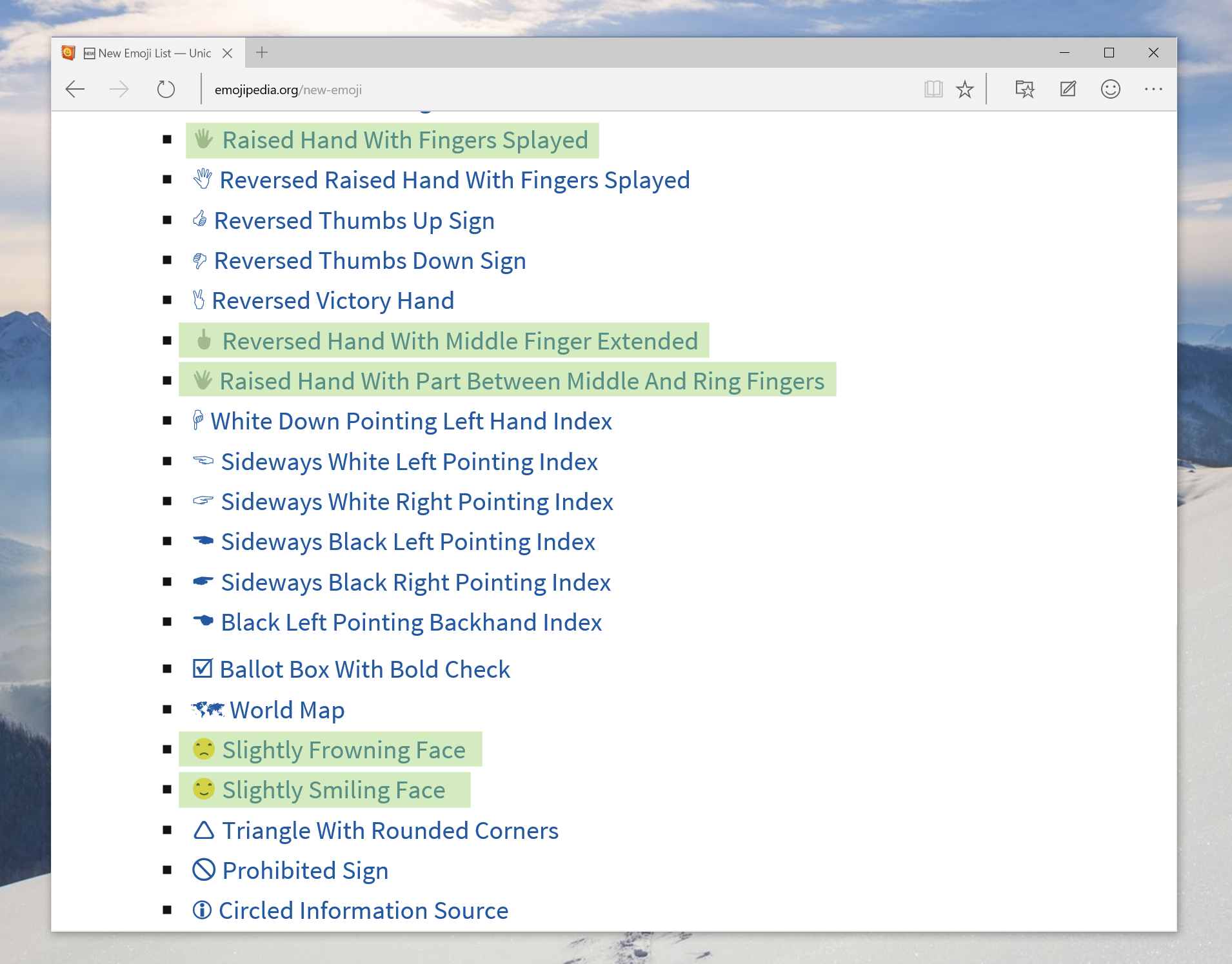 Windows 10 is now the first major OS to support the Middle Finger Emoji, Slightly Smiling Face Emoji and Slightly Frowning Face Emoji.