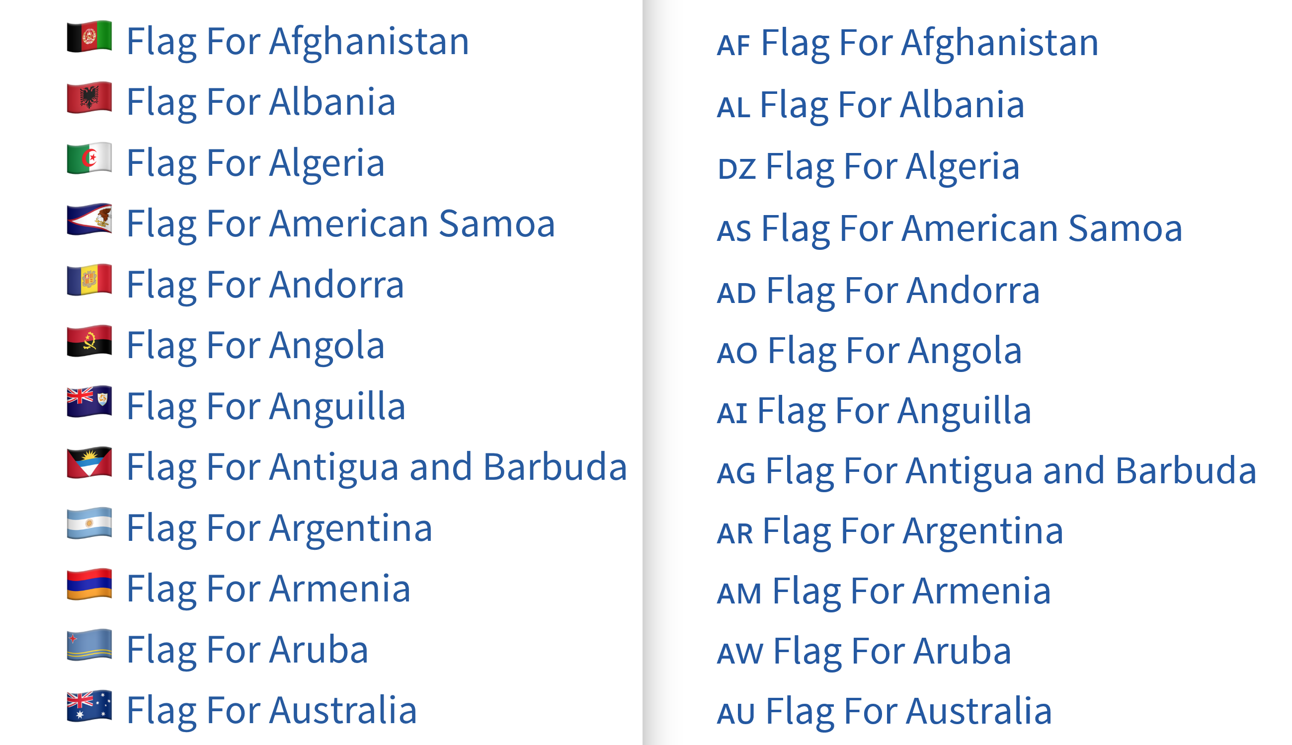 Flags remain unsupported on Windows, which instead displays the two-letter regional code for each country.