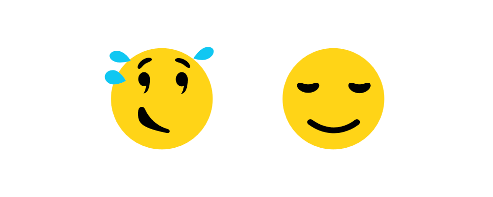 π Relieved Face loses its comical sheepishness, and now appears more calm with eyes closed, and a smile: