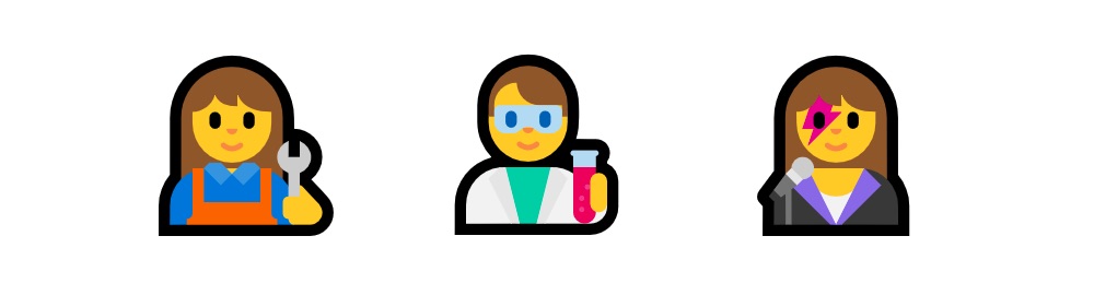16 new professions are all included, each with a male and female counterpart. These include jobs such as a π©βπ§ Mechanic, π¨βπ¬ Scientist, or π©βπ€ Singer:[2]