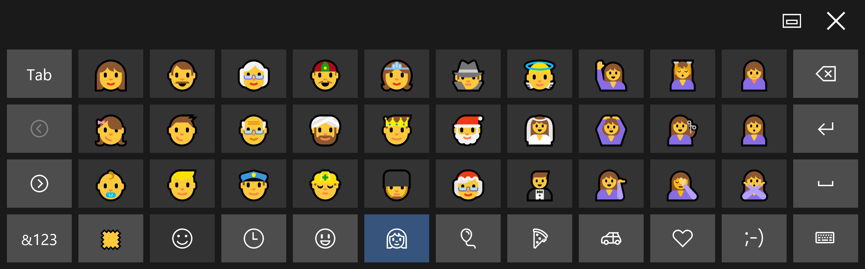However for users of Pinyin input, the new emoji shortcut of Ctrl-Shift-B which brings up this panel is considerably faster to use than the touch keyboard interface: