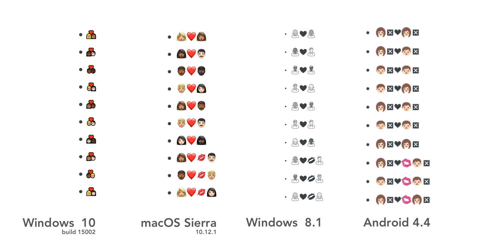 The new interracial couple emojis are implemented in the same way Microsoft added diverse families to Windows 10 Anniversary Update: using Emoji ZWJ Sequences.
