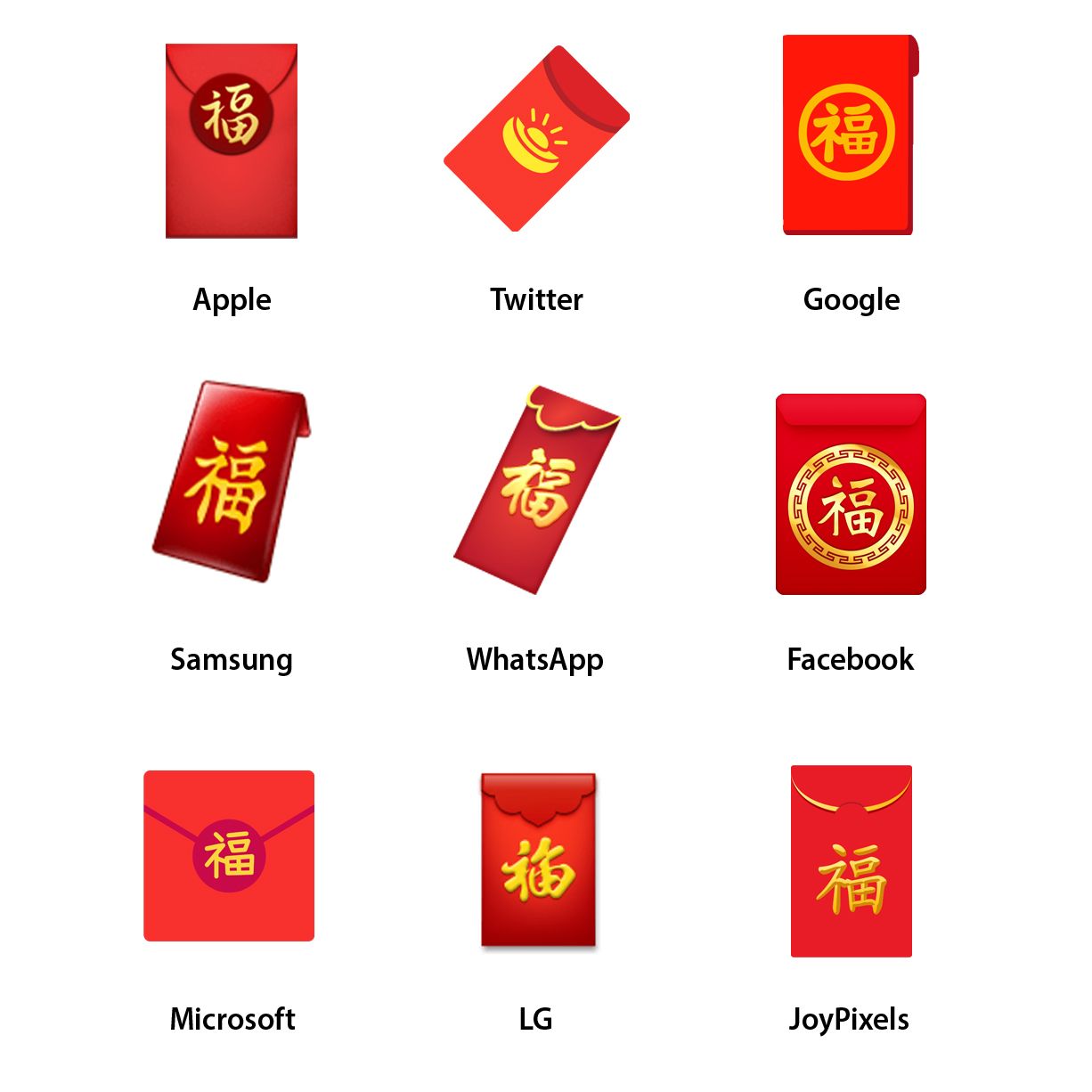A wider selection of the emojis that are often associated with the Lunar New Year are listed below: